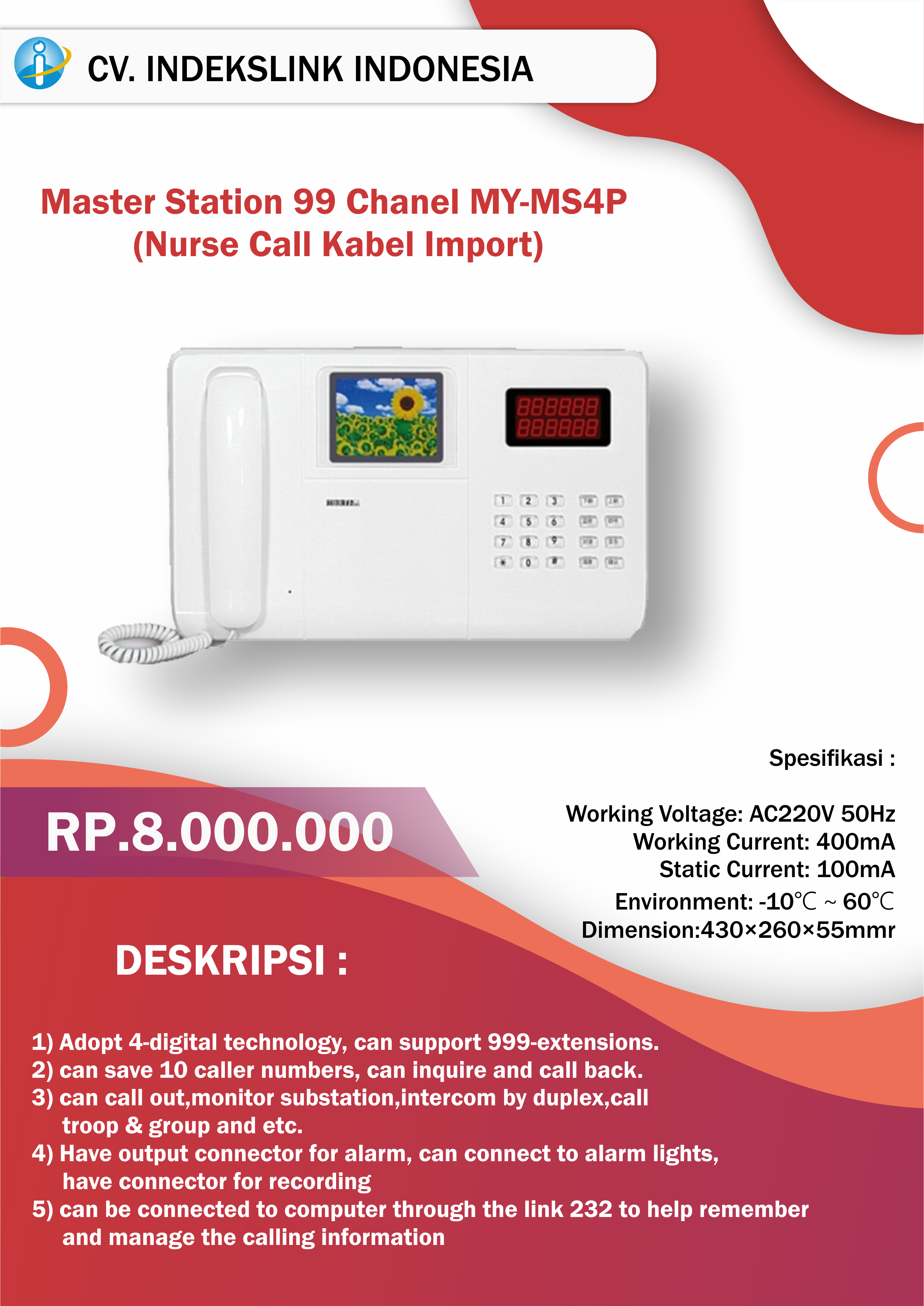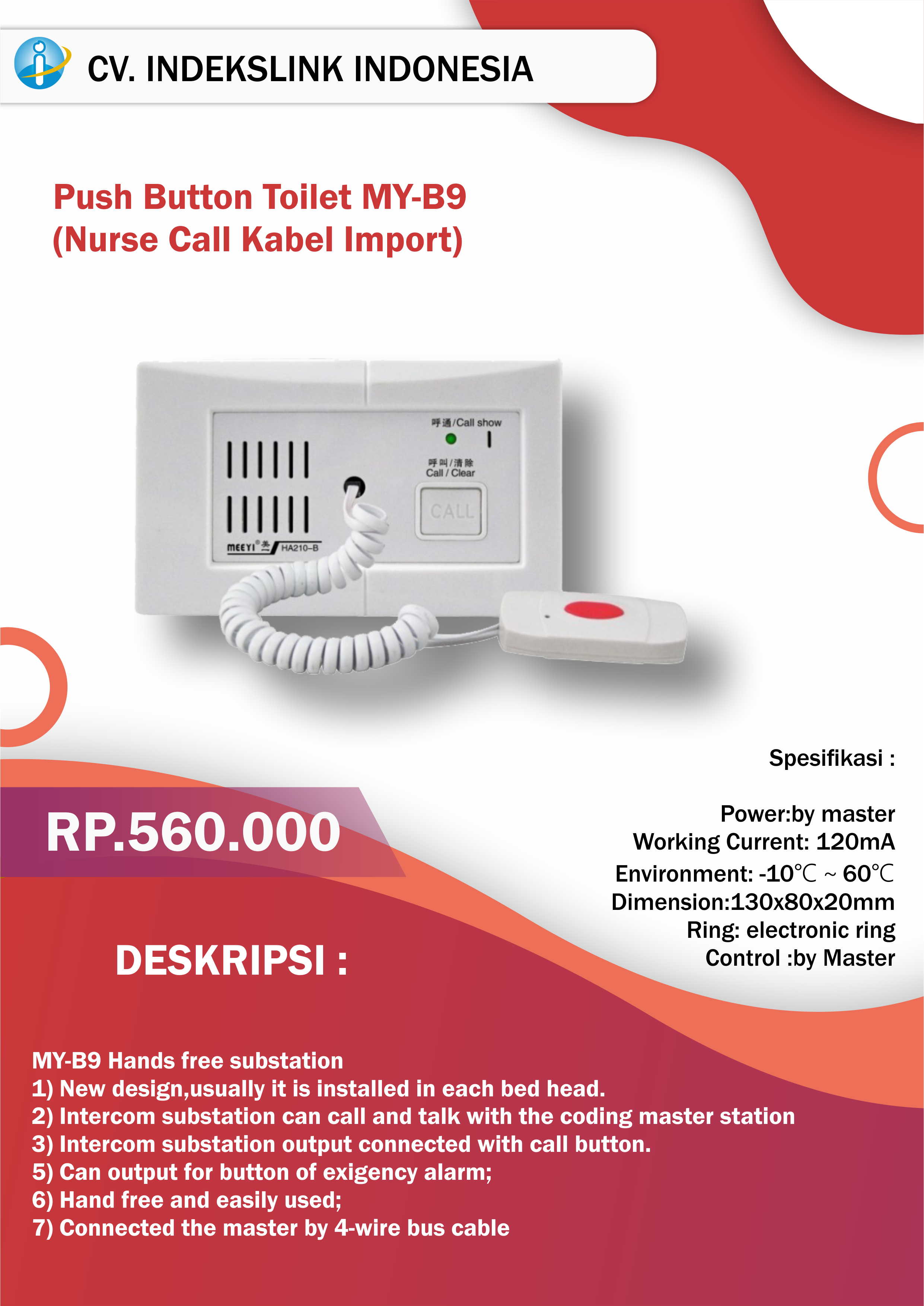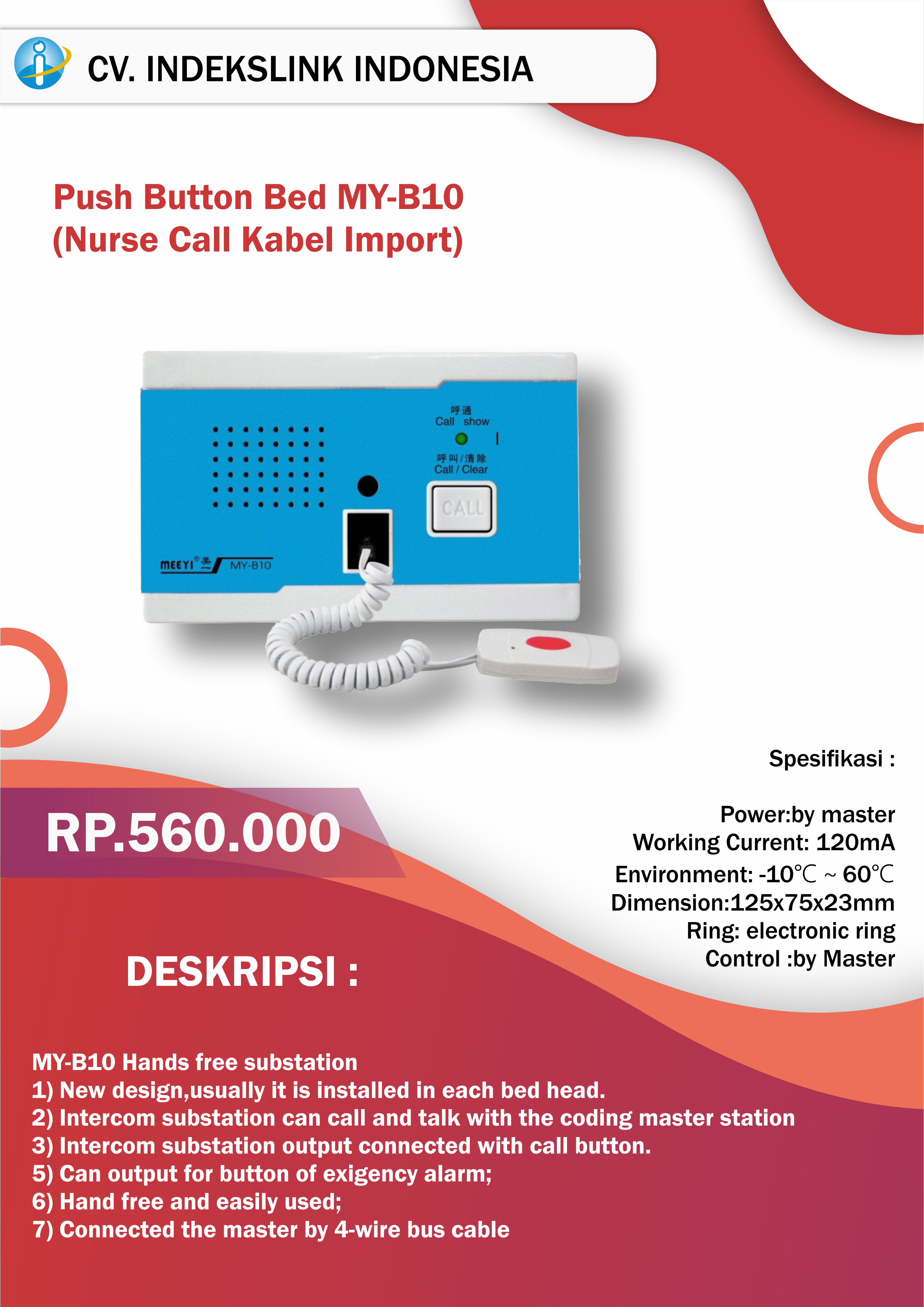 CV. Indekslink Indonesia adalah perusahaan yang mensupply kebutuhan IT hardware & Software, salah satunya seperti mengimport produk Nurse Call, Nurse Call Wireless. Kami Hadir untuk menjawab bermacam kebutuhan informasi dan teknologi yang kini telah menjadi kebutuhan dasar bagi para pelaku bisnis di tanah air, komitmen Indekslink Indonesia dalam memberikan layanan informasi dan teknologi terbaik.